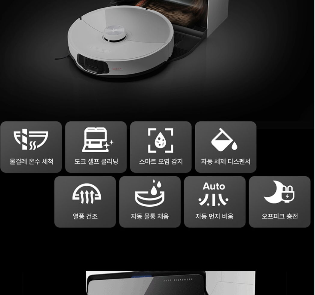 - 주요 기능: 직배수 시스템, 완전 자동화 청소, AI 장애물 회피