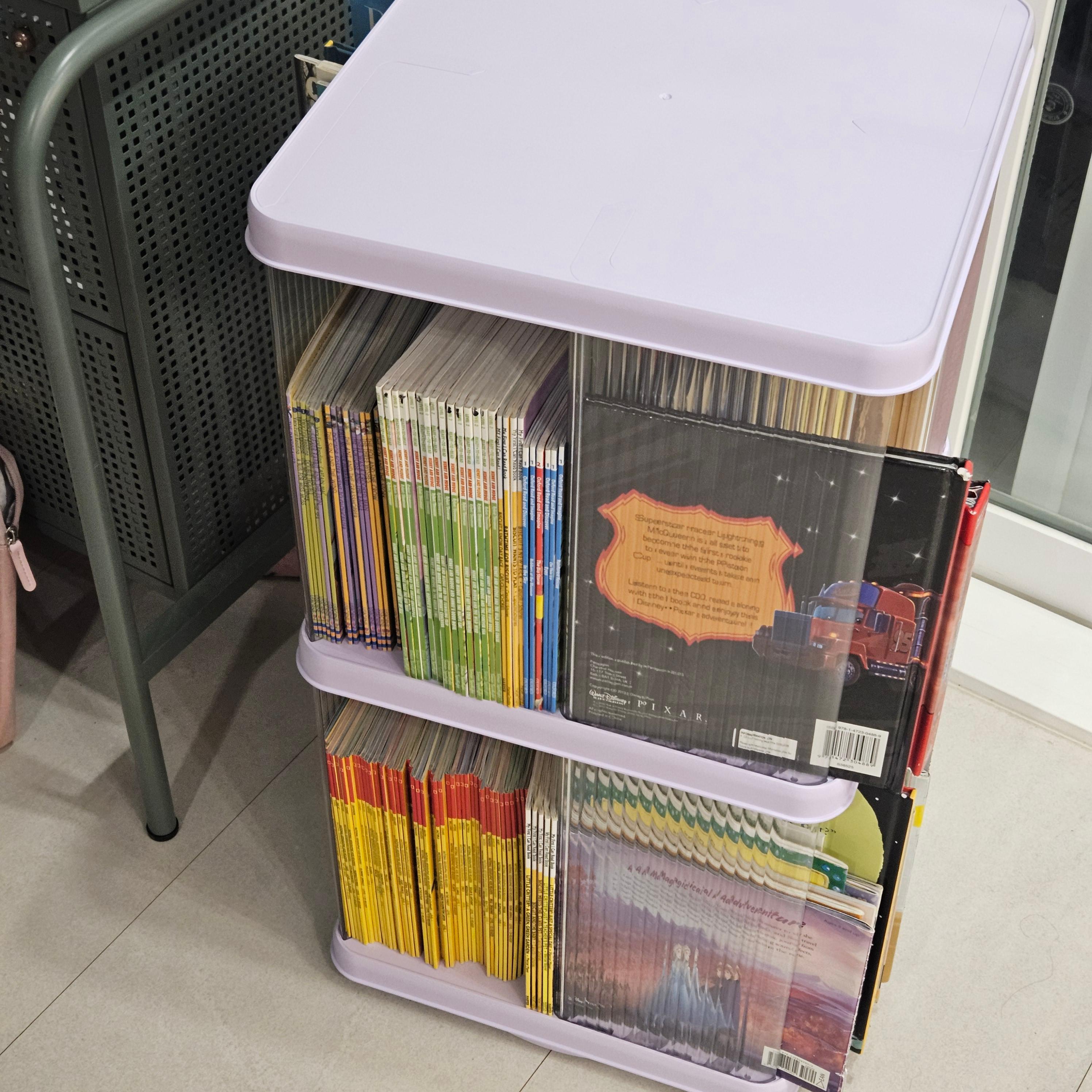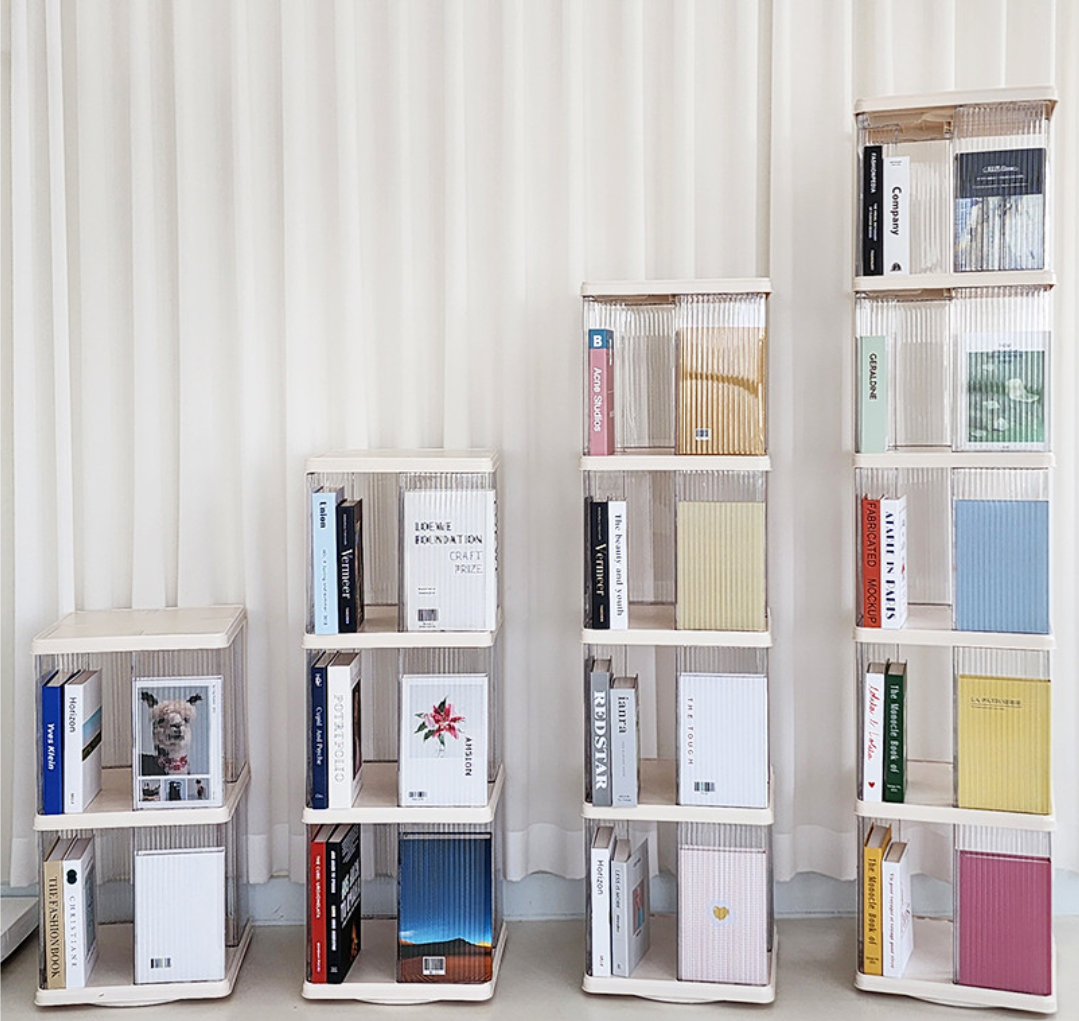 2단 회전 책장은 깔끔하고 귀여운 매력이 있지만, 실용성과 수납량을 생각하면 4단이 훨씬 만족도가 높습니다.